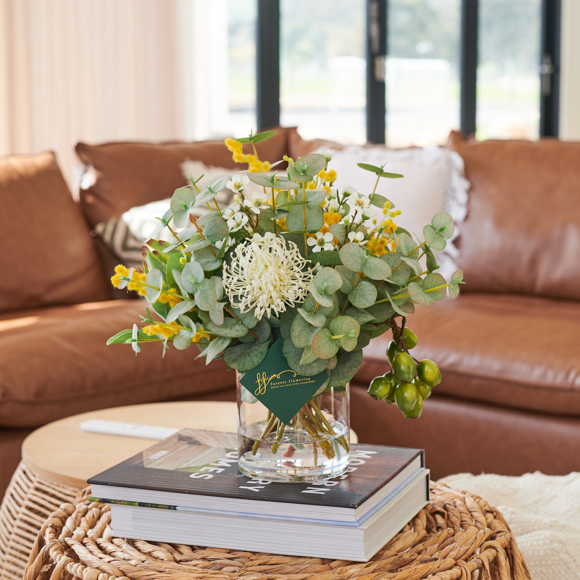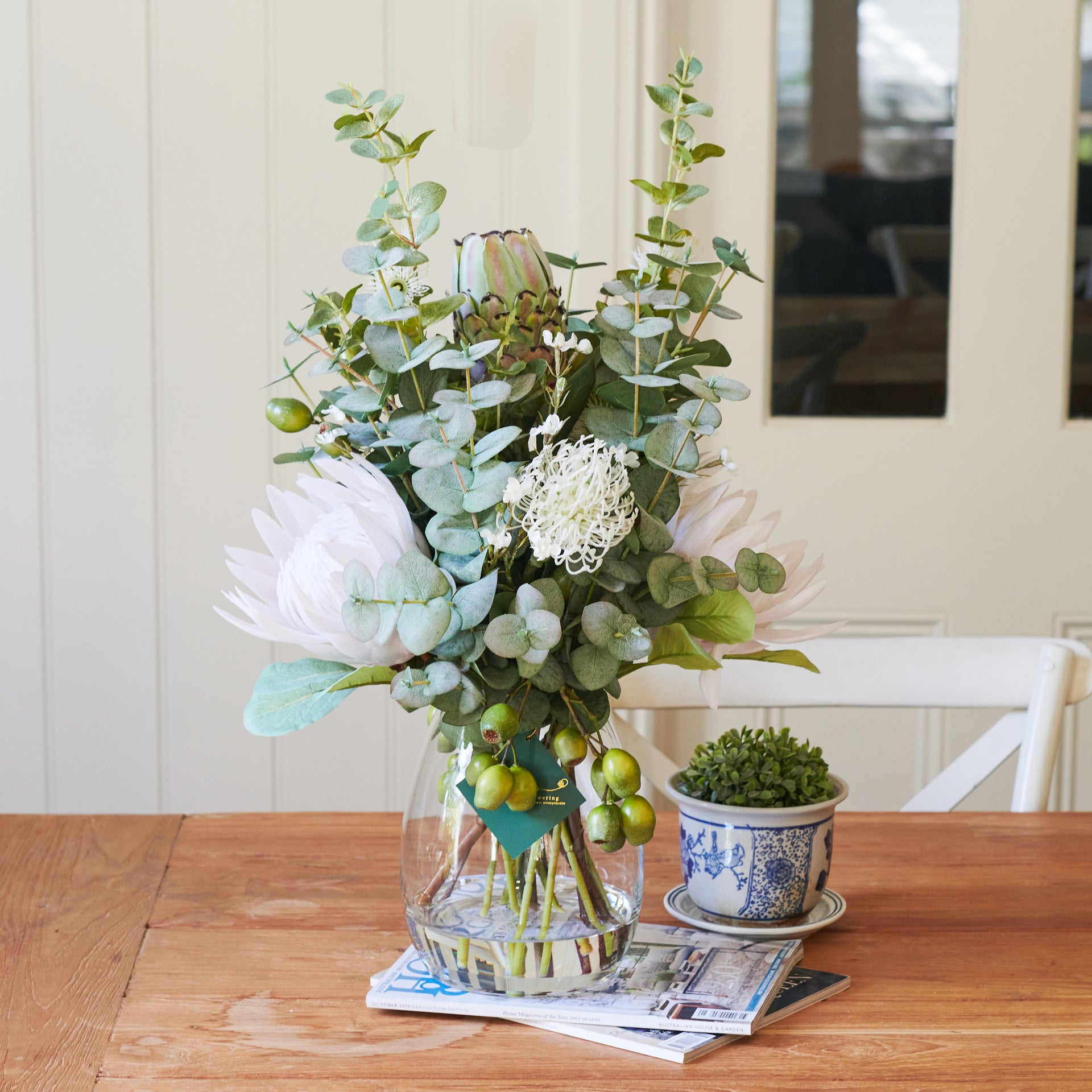 Flowering Eucalyptus, Banksia and Wax Flower Arrangement