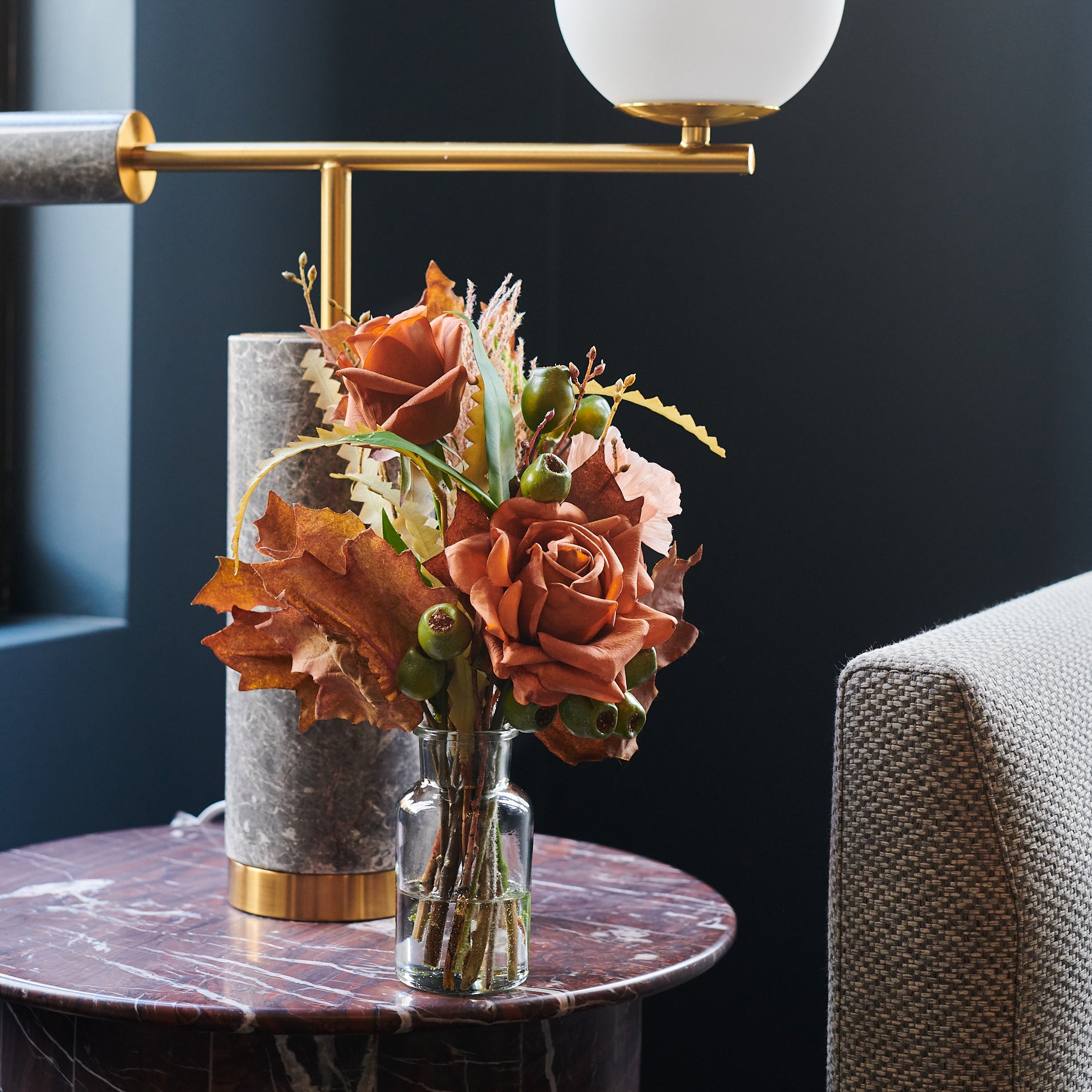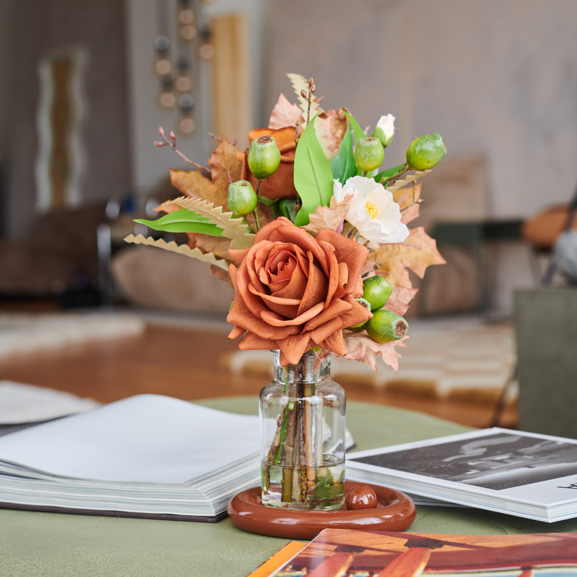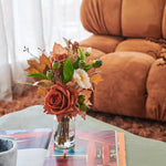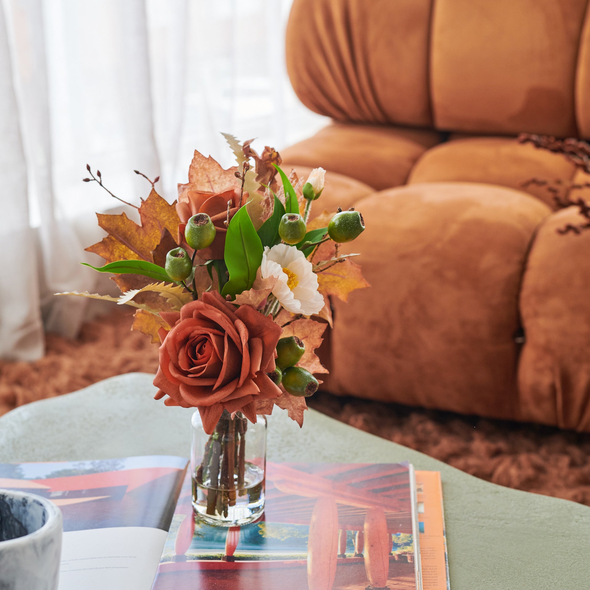 Real Touch Artificial Roses and Poppies with Gum Nuts, Sawtooth and Maple Autumn leaves.