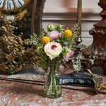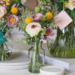 Real touch Ranunculus and various spring flowers in glass vase and artificial water