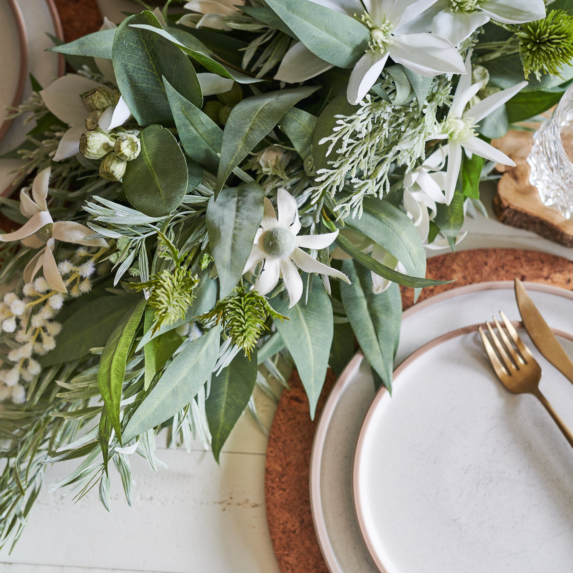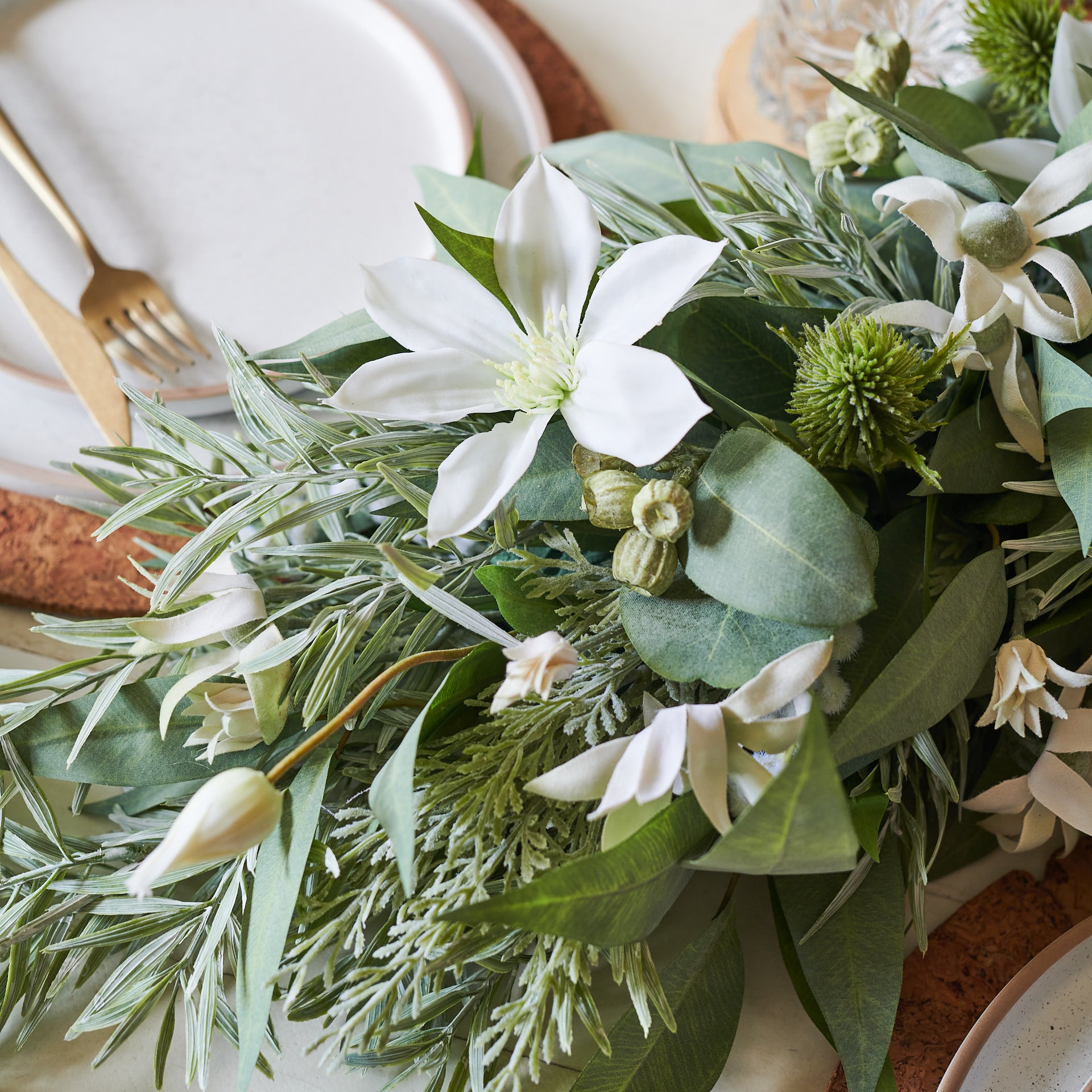 Handmade Garland featuring Real Touch Eucalyptus, Clematis, Thistle, Gumnuts and Wattle.