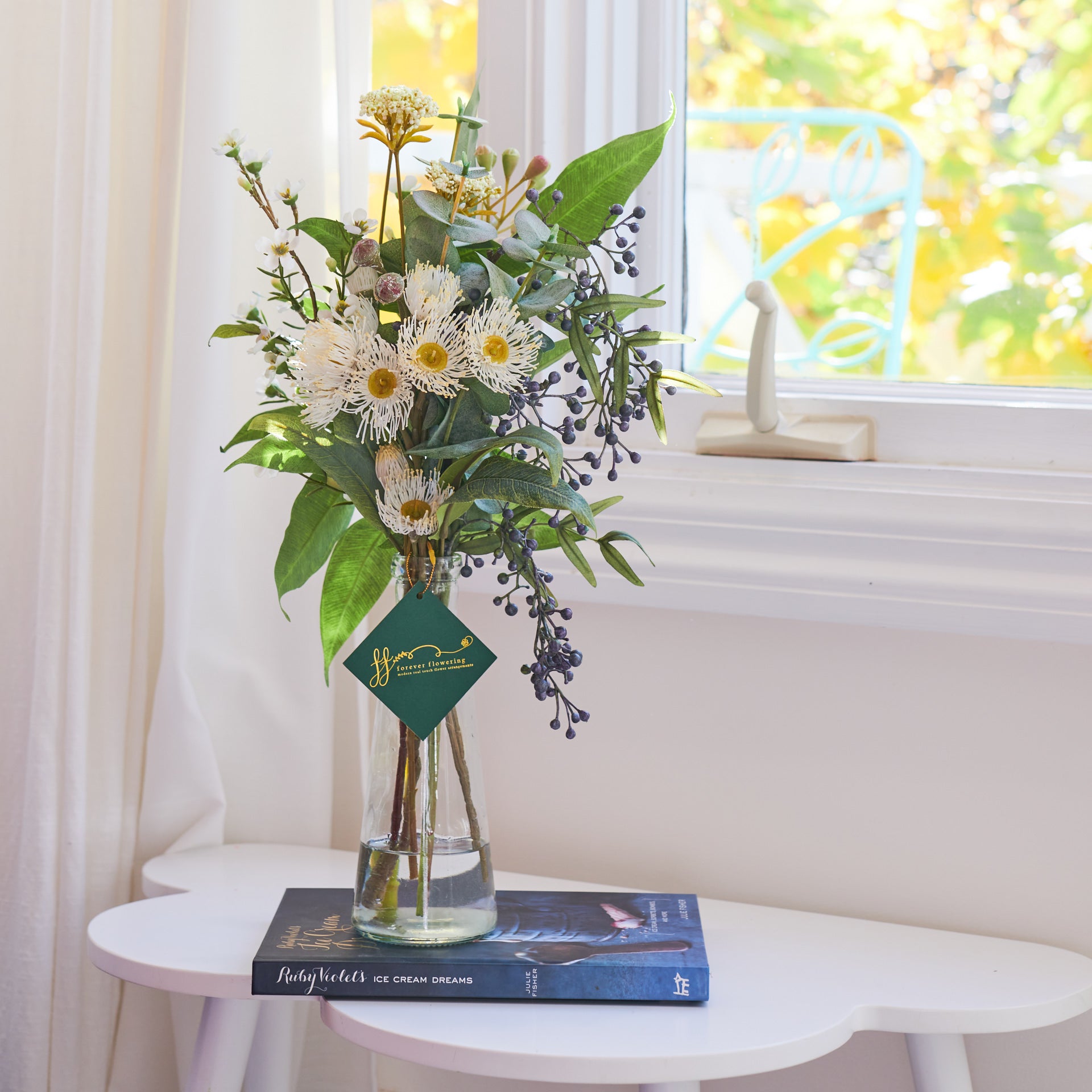 Real touch Eucalyptus and Blossom, with Pepperberry, Gumnuts, and Queen Annes Lace Bush.