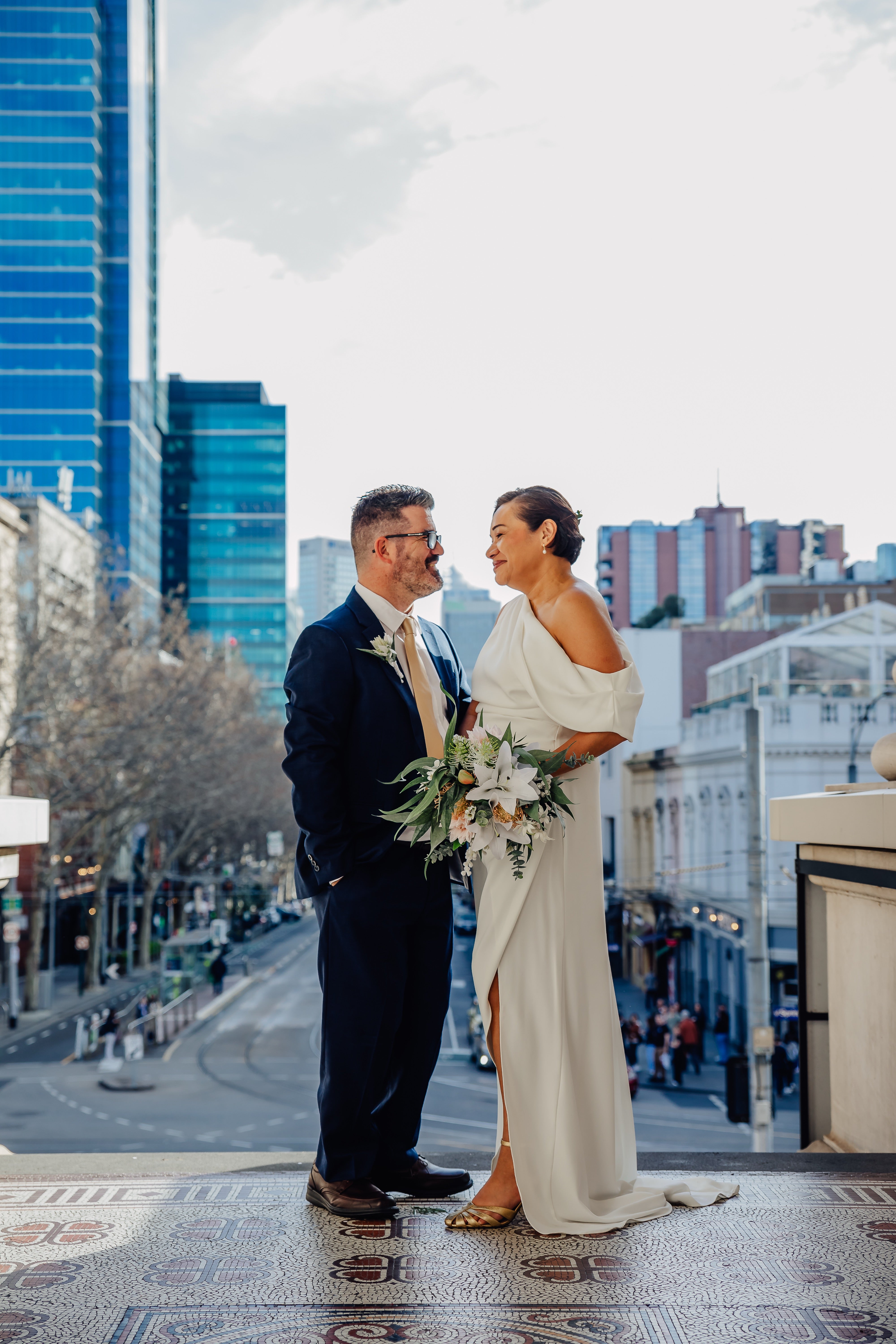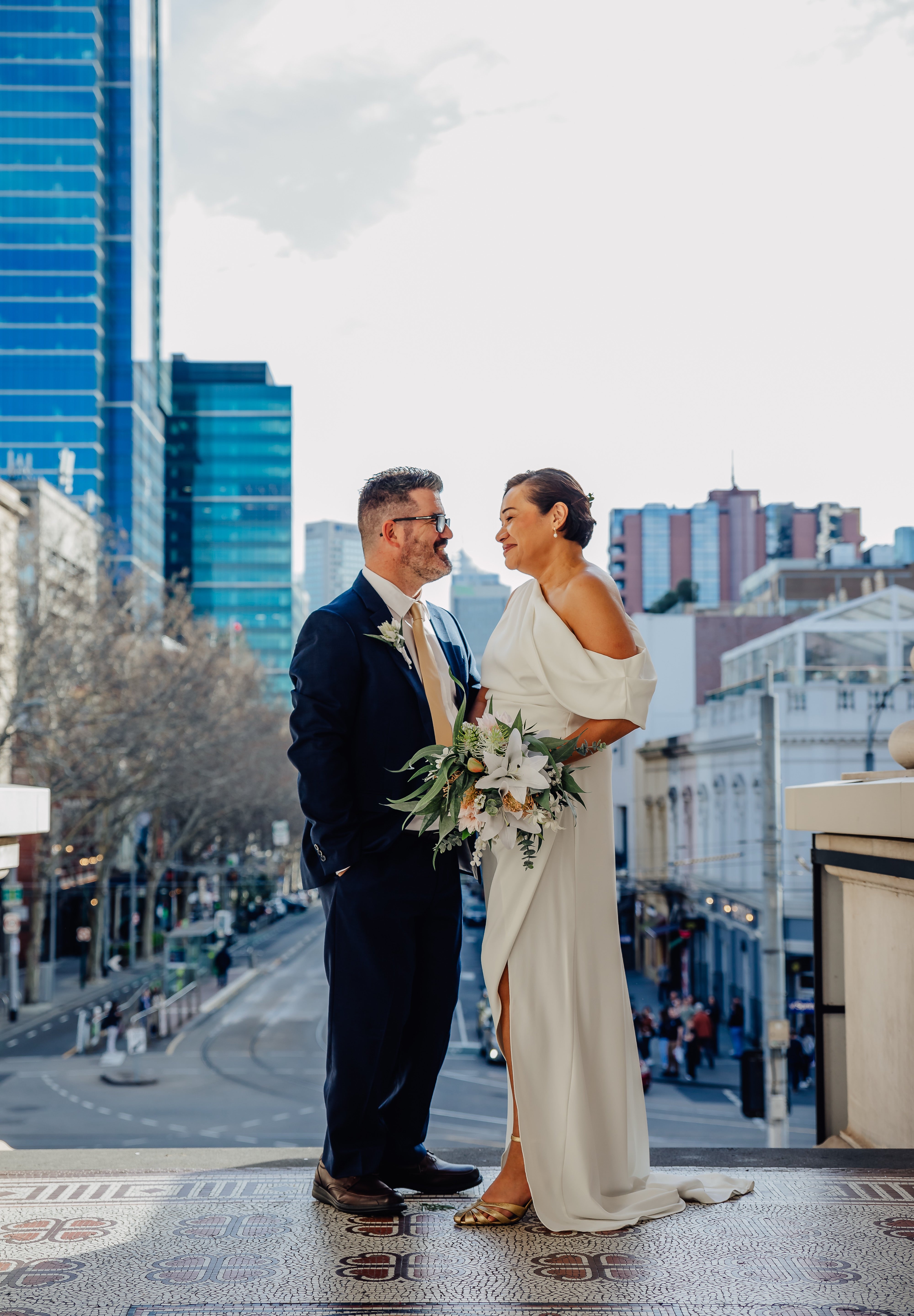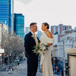 Classic, elegant, and full of passion—this beautiful bridal bouquet is classic and minimal. Featuring gorgeous real touch Casablanca Lily's complimented with Spinning Gum, Dahlias, Grevilleas and Eucalyptus Long Leaf. Elegant and refined with Australian Native accents, this handcrafted bouquet is perfect for destination weddings, beachside vows or garden nuptials.