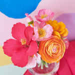 Real Touch Hibiscus, Poppy and Ranunculus in Glass Vase with Artificial Water.