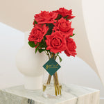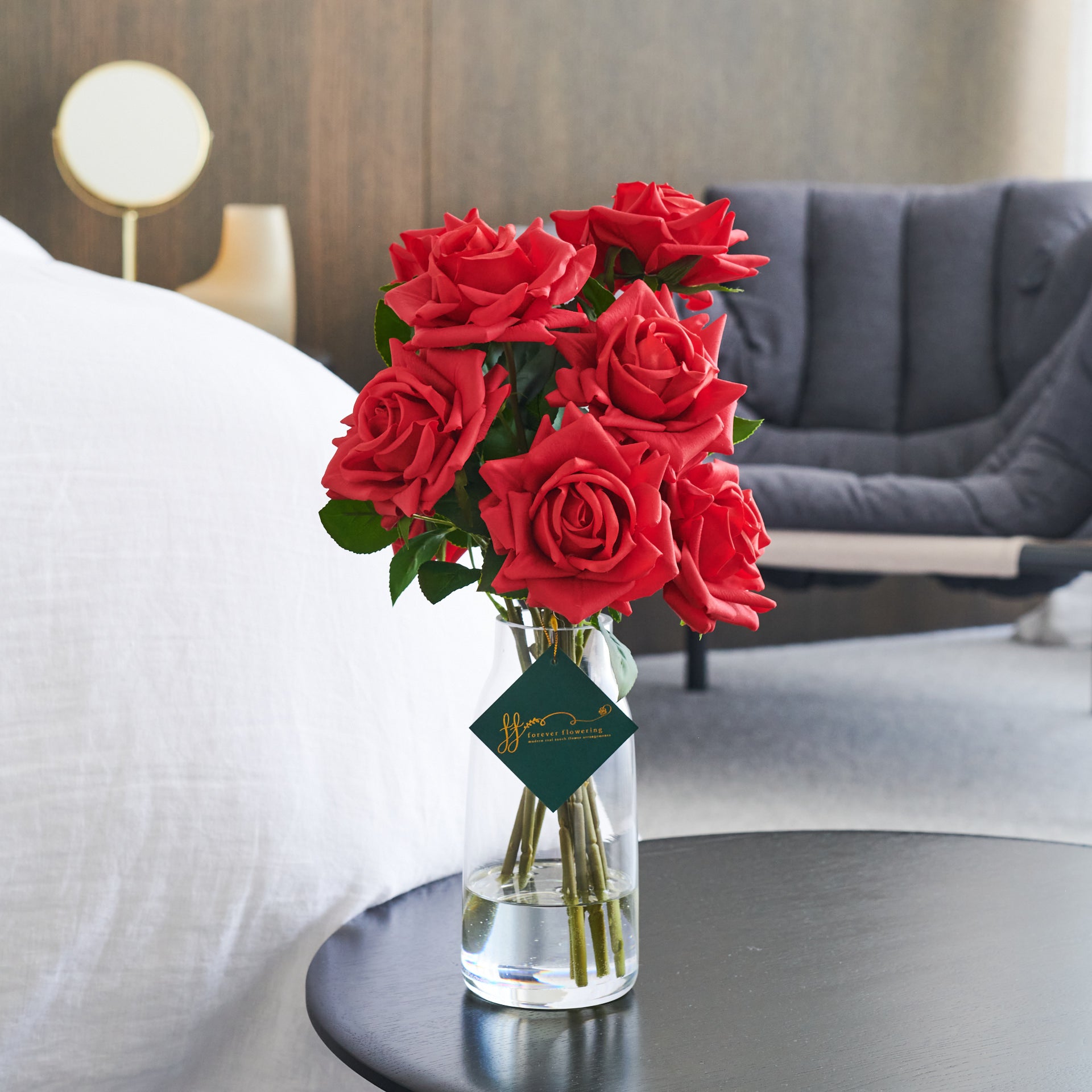 A classic arrangement featuring our Signature Real Touch Roses permanently set in Glass Vase in Artificial Water.