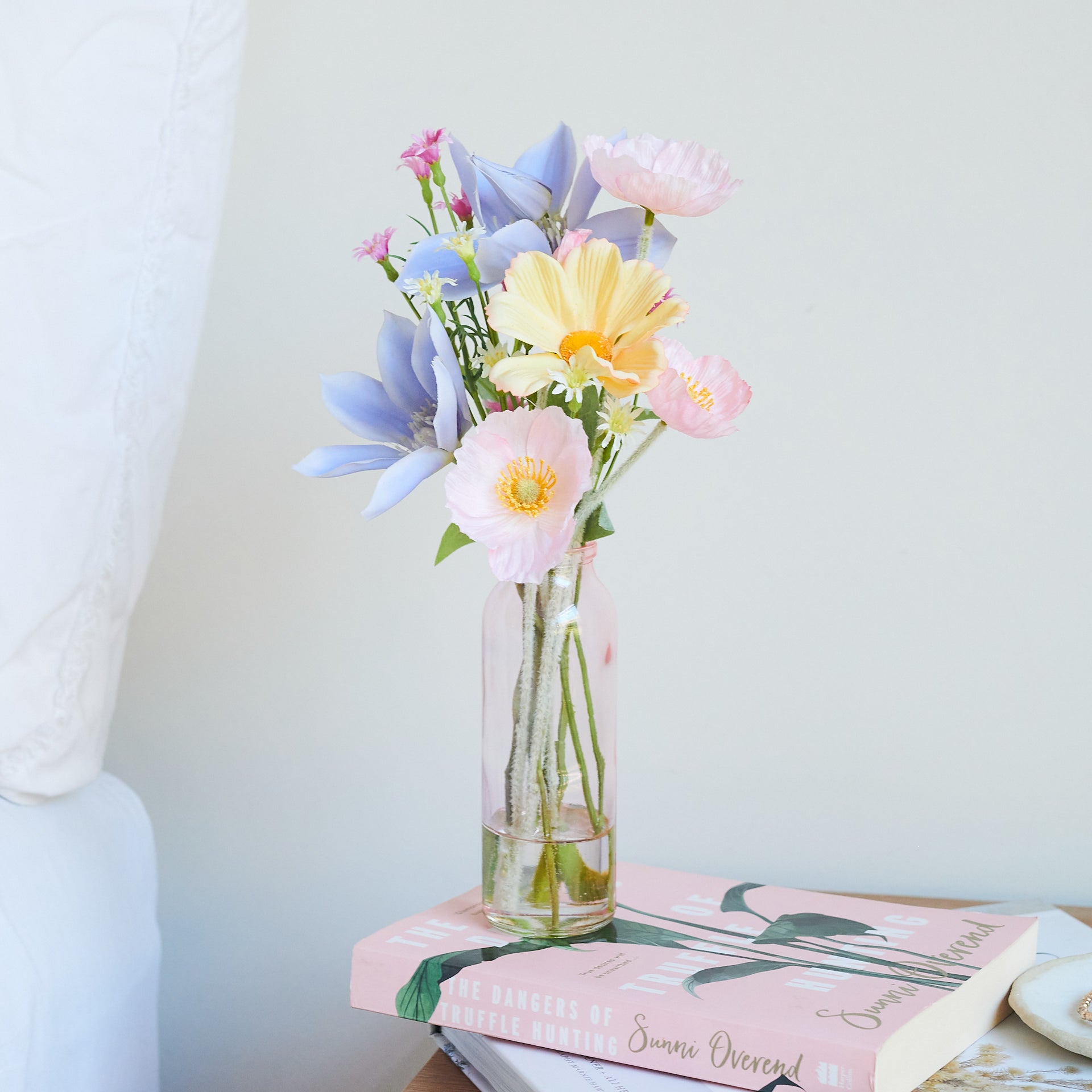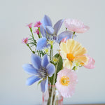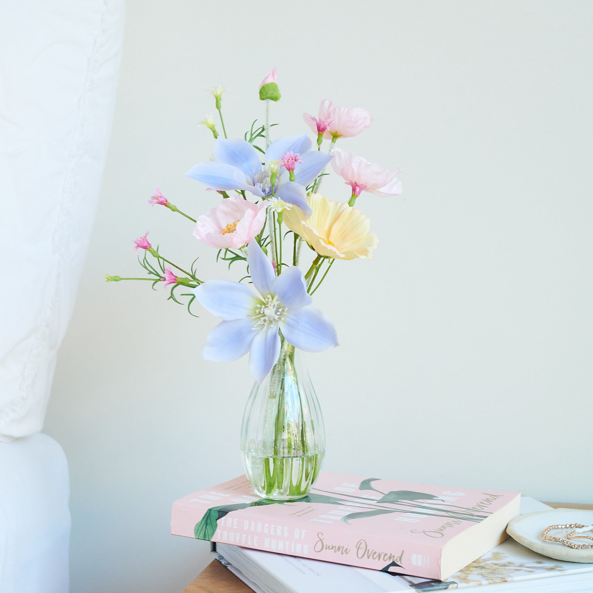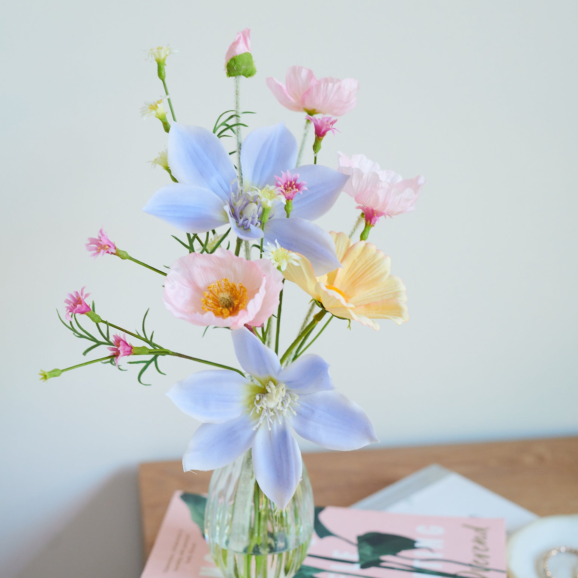Real Touch Clematis, Cosmo and Poppy set in Glass Vase in Artificial Water