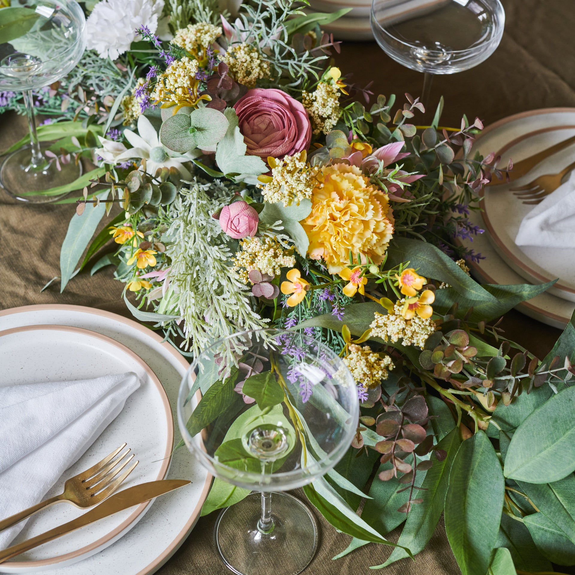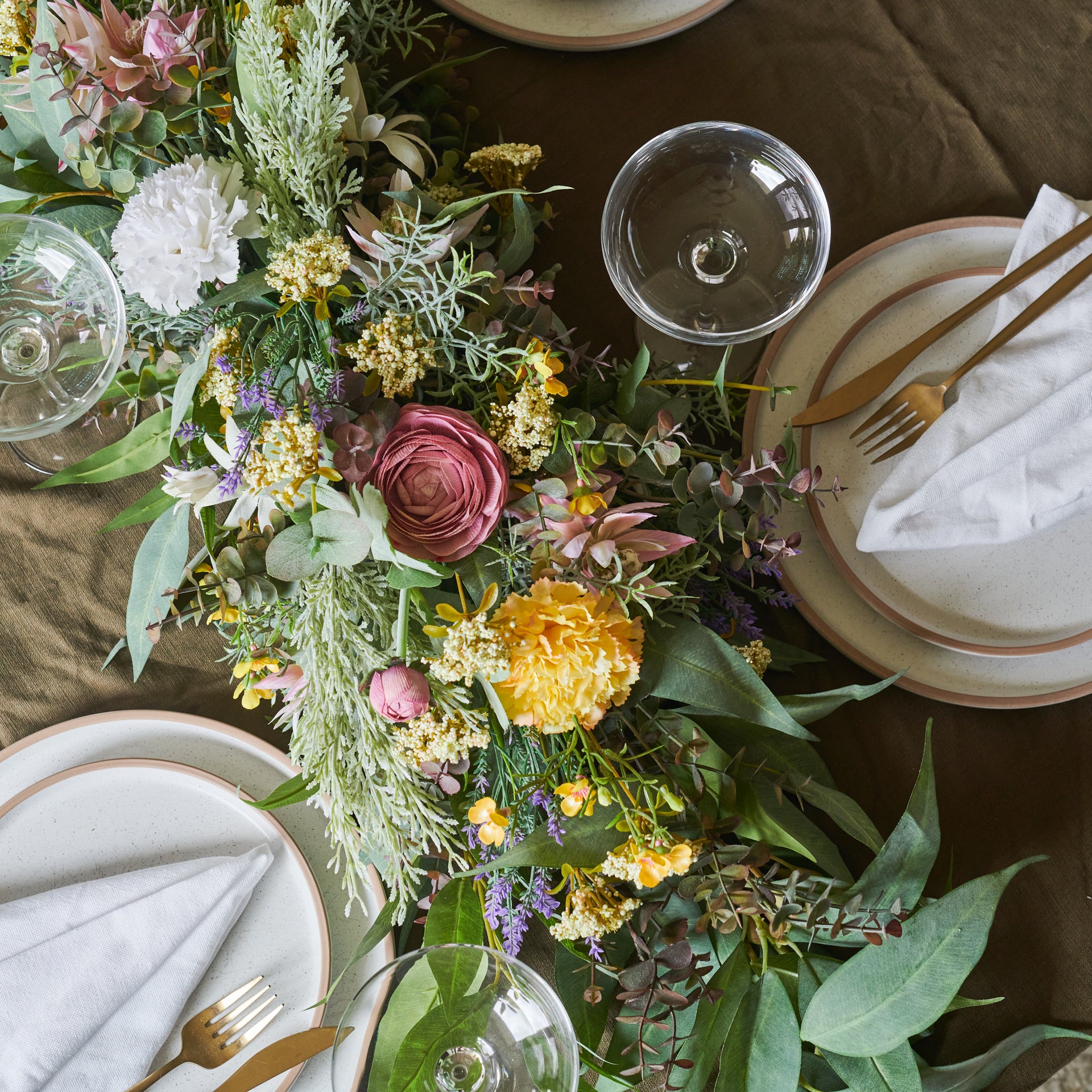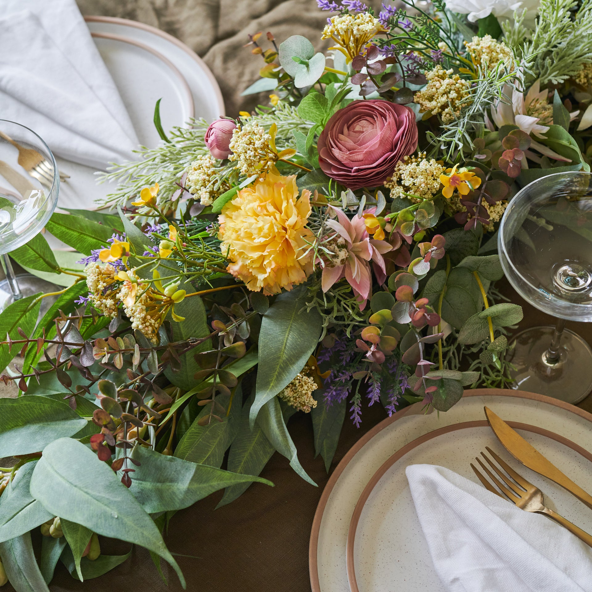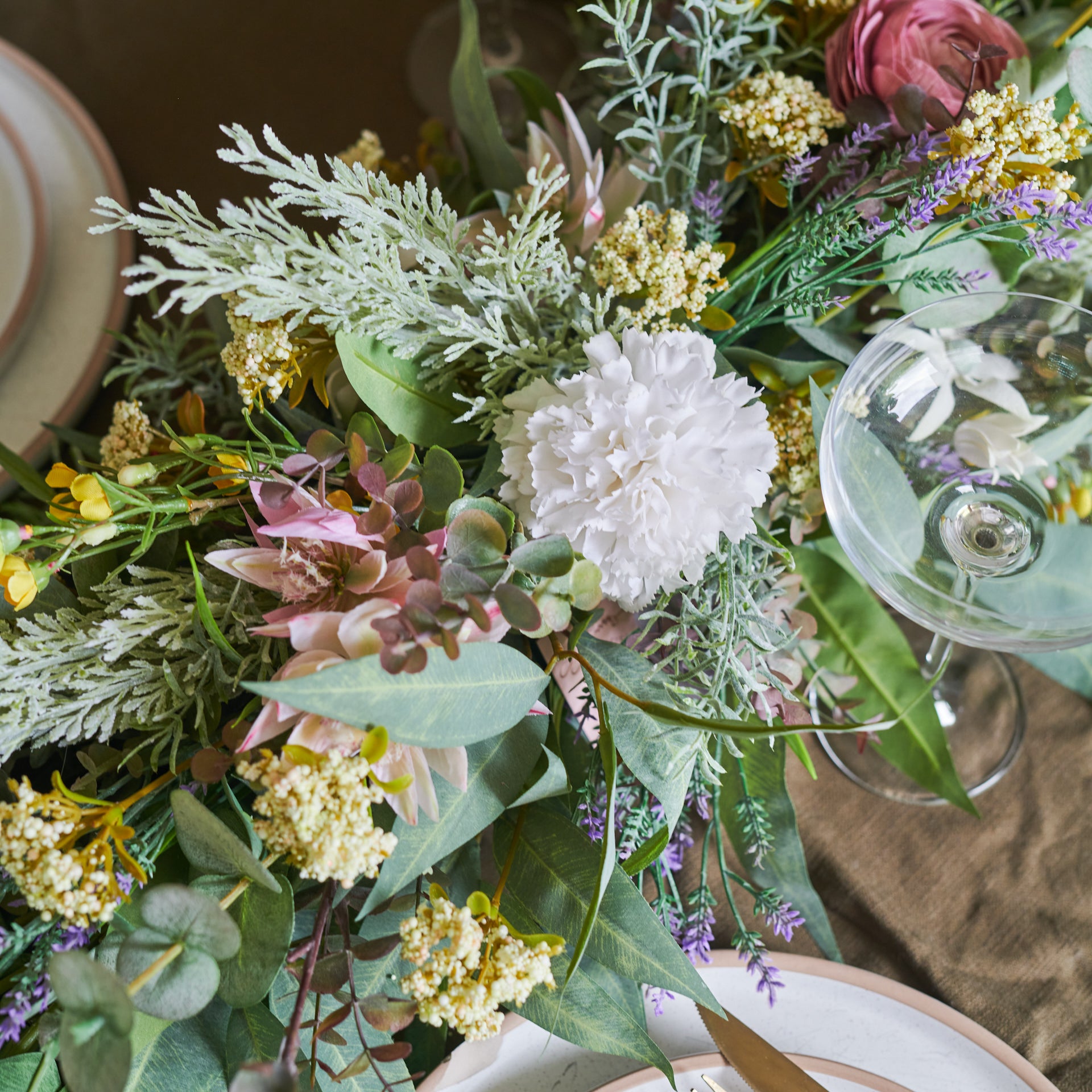 Handmade Table Garland of Ranunculus, Carnation, Eucalyptus, Blushing Bride, Queen Annes Lace, Lavender and Wax Flower