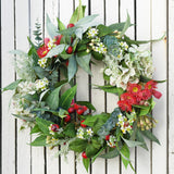 Handmade Wreath for Christmas or all year round! Made with a combination of Real Touch Eucalyptus, Blossom, Seeded Gum, Spinning Gum and Hydrangea with Crabapple and Wax Flower. Diameter 50cm.