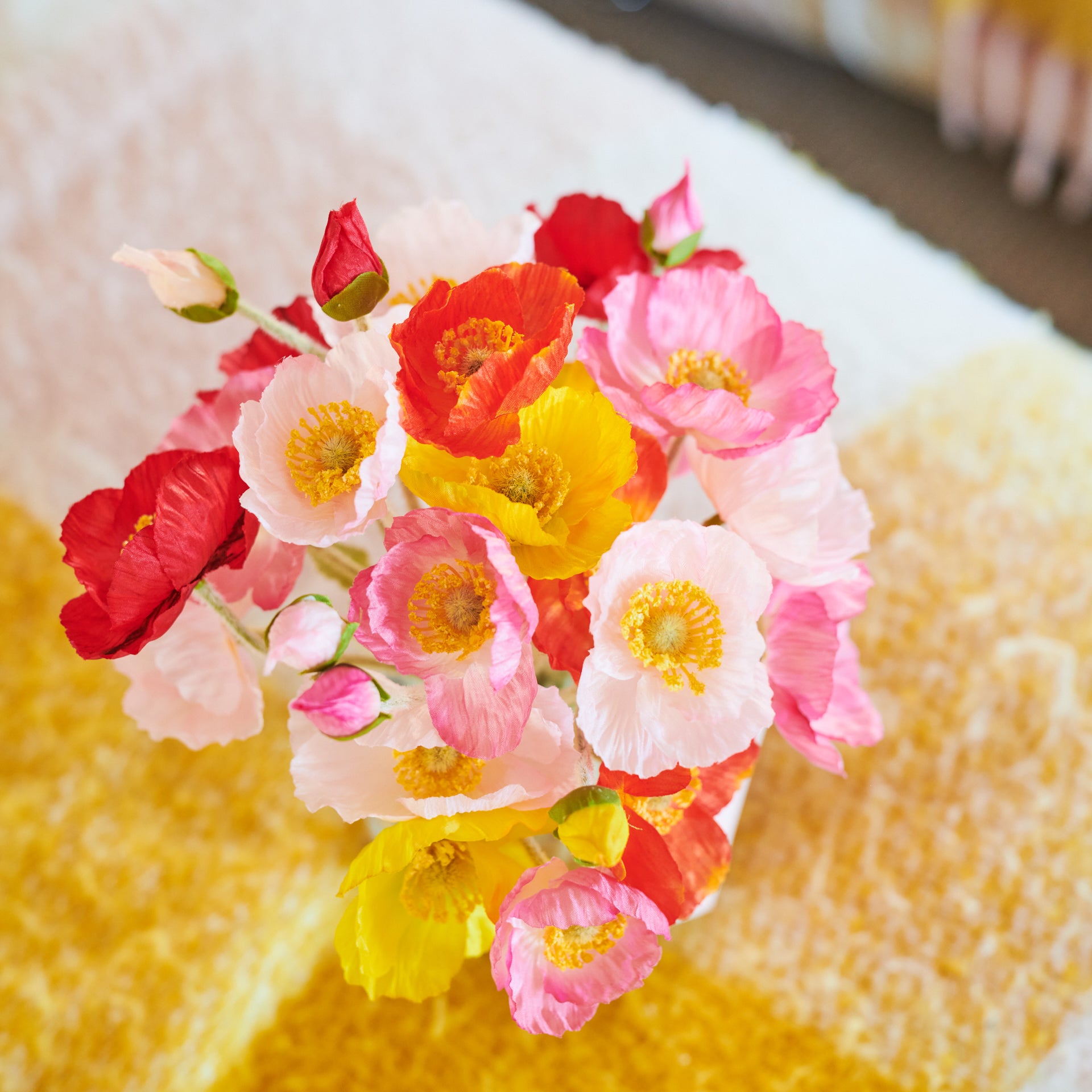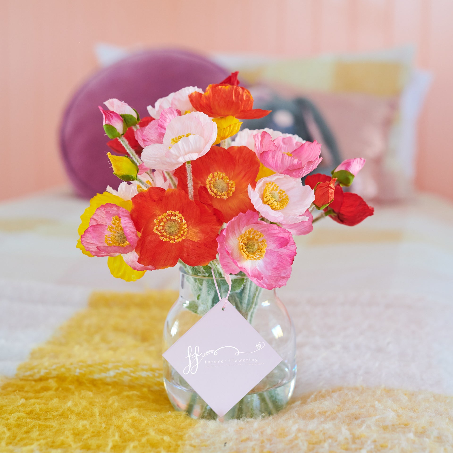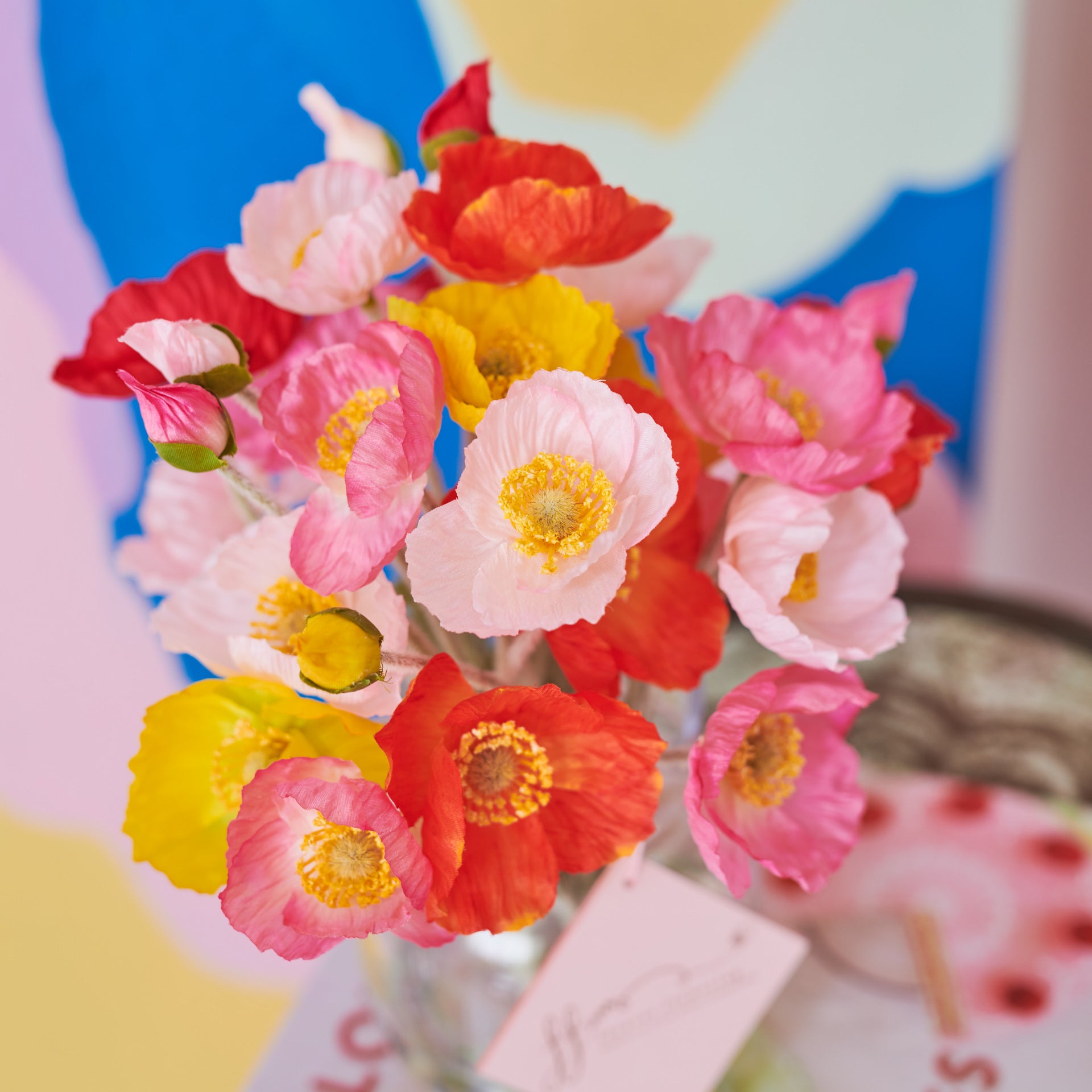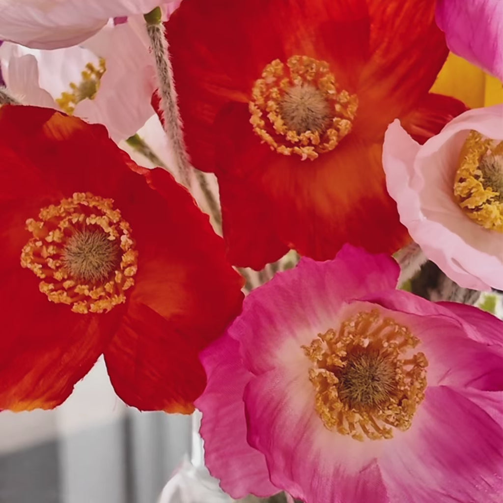 A colourful mix of Real Touch Poppies set in Glass Vase in Artificial Water.