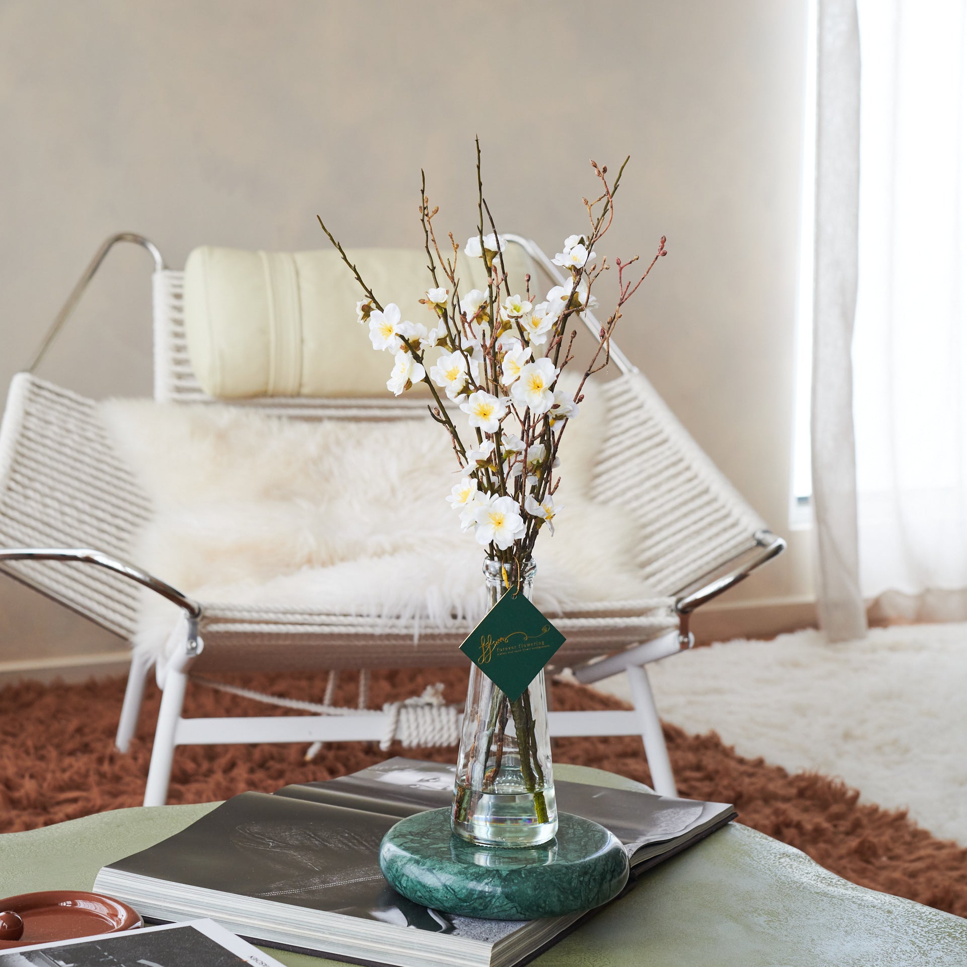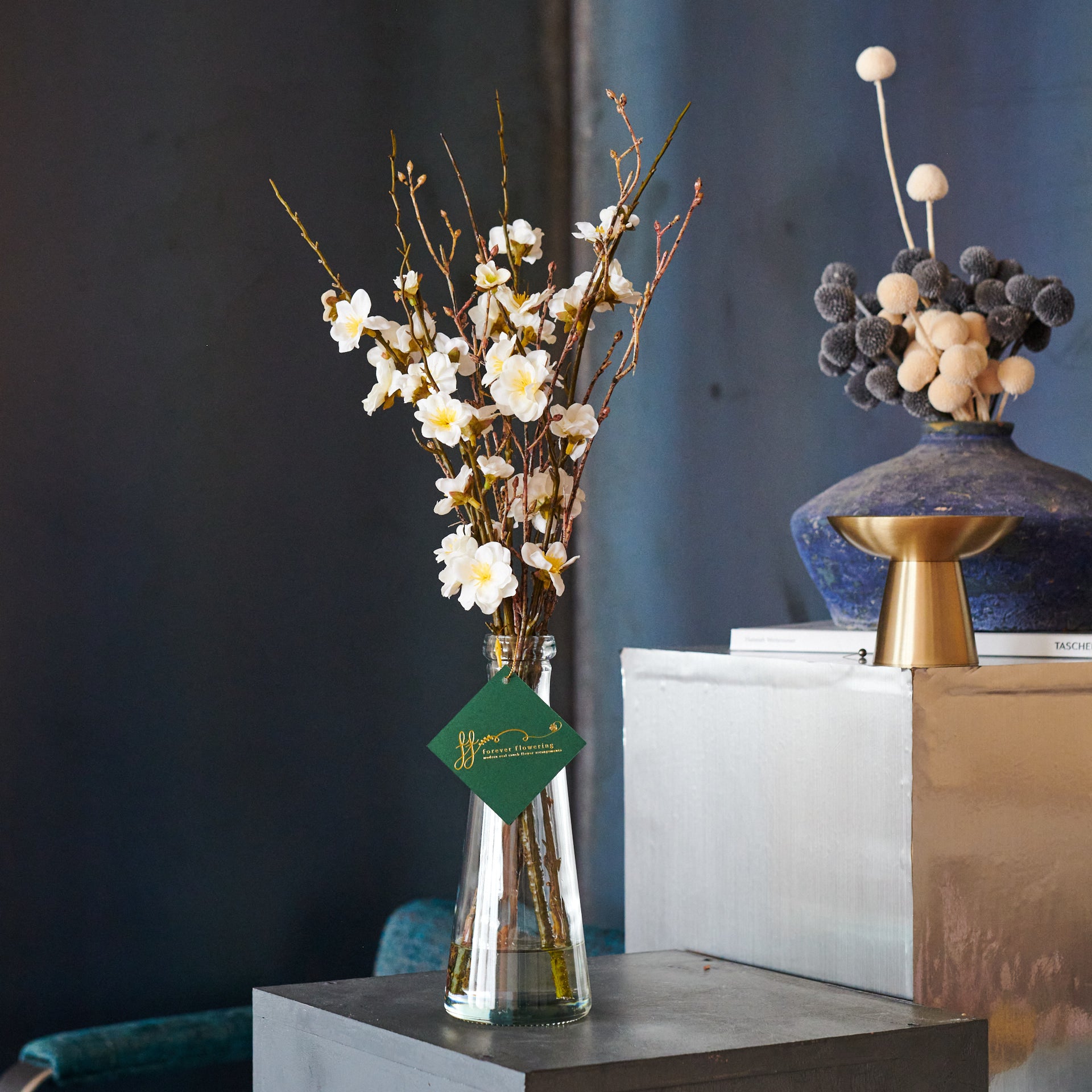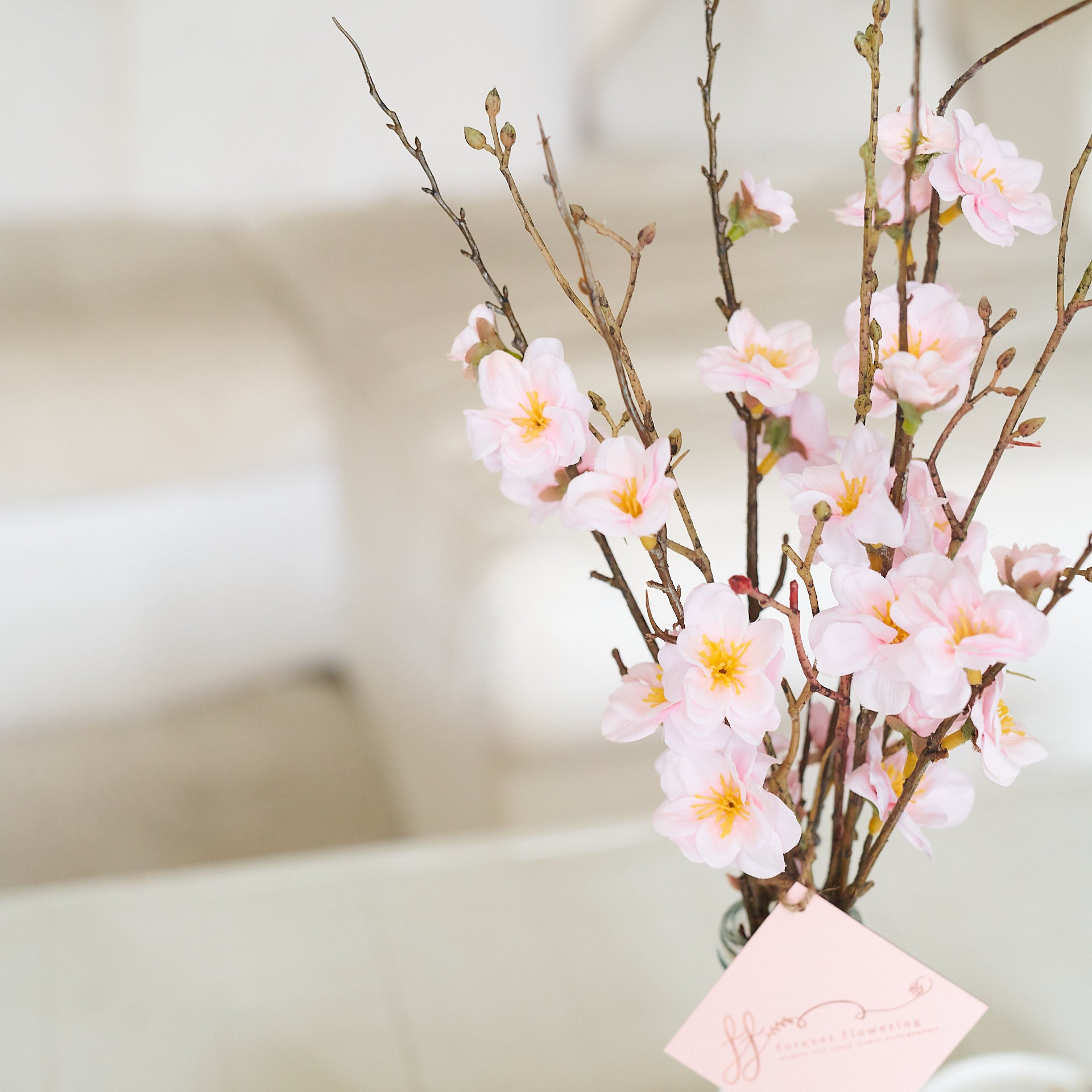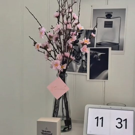 Real Touch Cherry Blossom set in Artificial Water in glass vase.