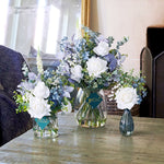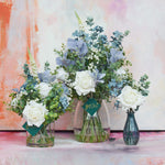 Mixed flowers from the Catalina and Hampton Arrangements permanently set in a blue glass vintage vase