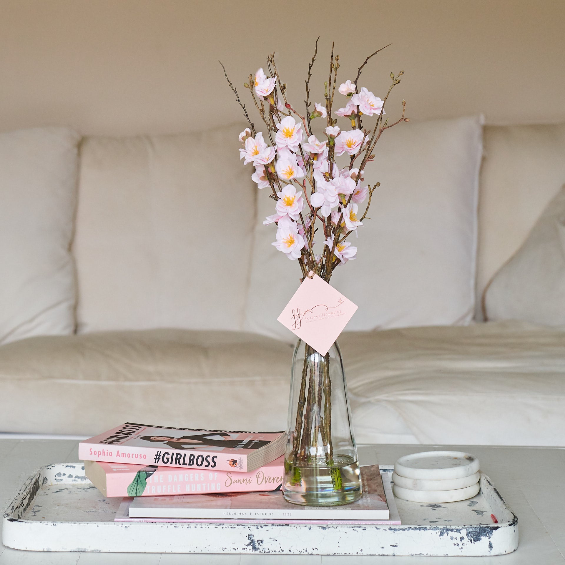 Sakura : Real Touch Cherry Blossom set in Artificial Water in glass vase.