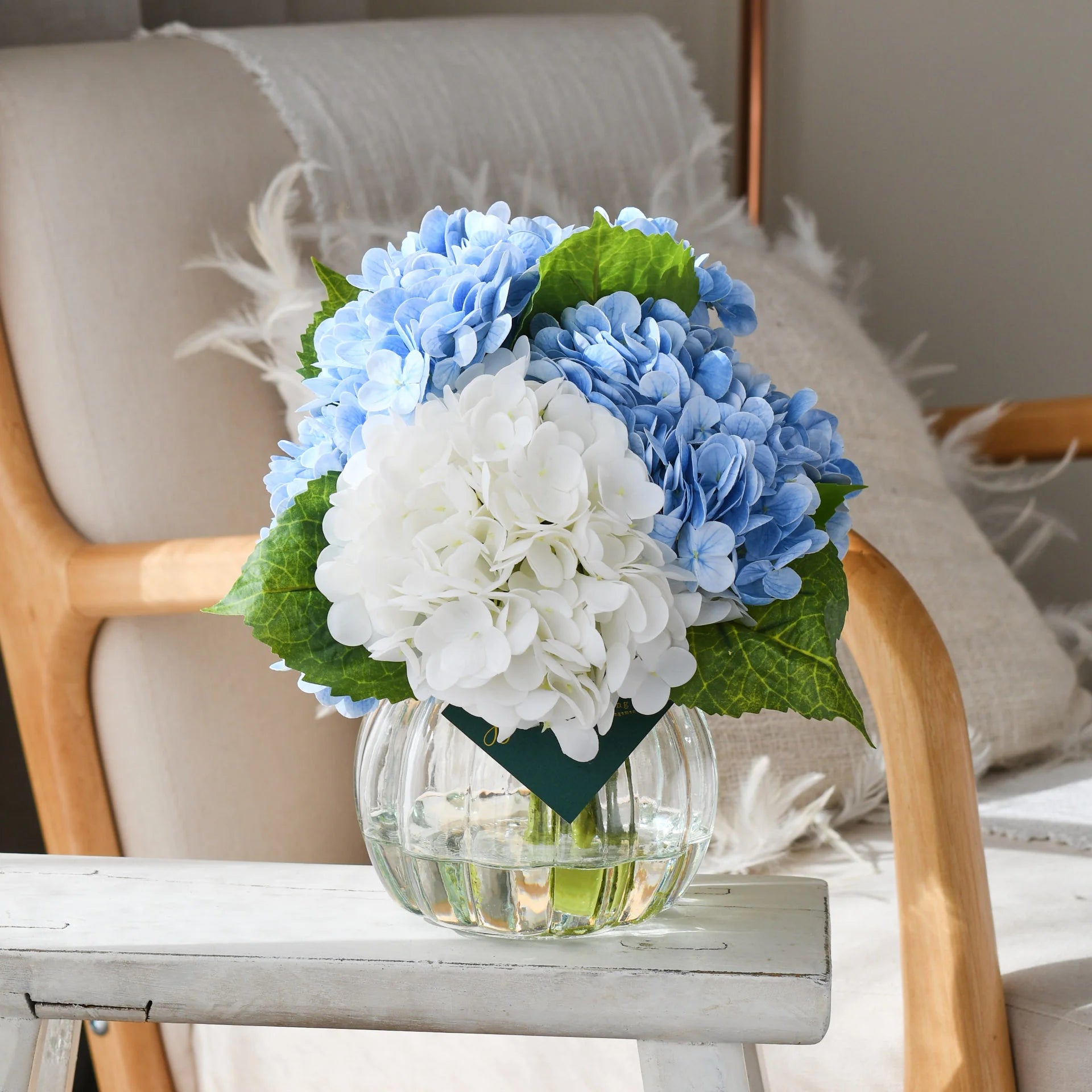Maisey : Real Touch Hydrangeas in a small fishbowl vase permanently set in artificial water.