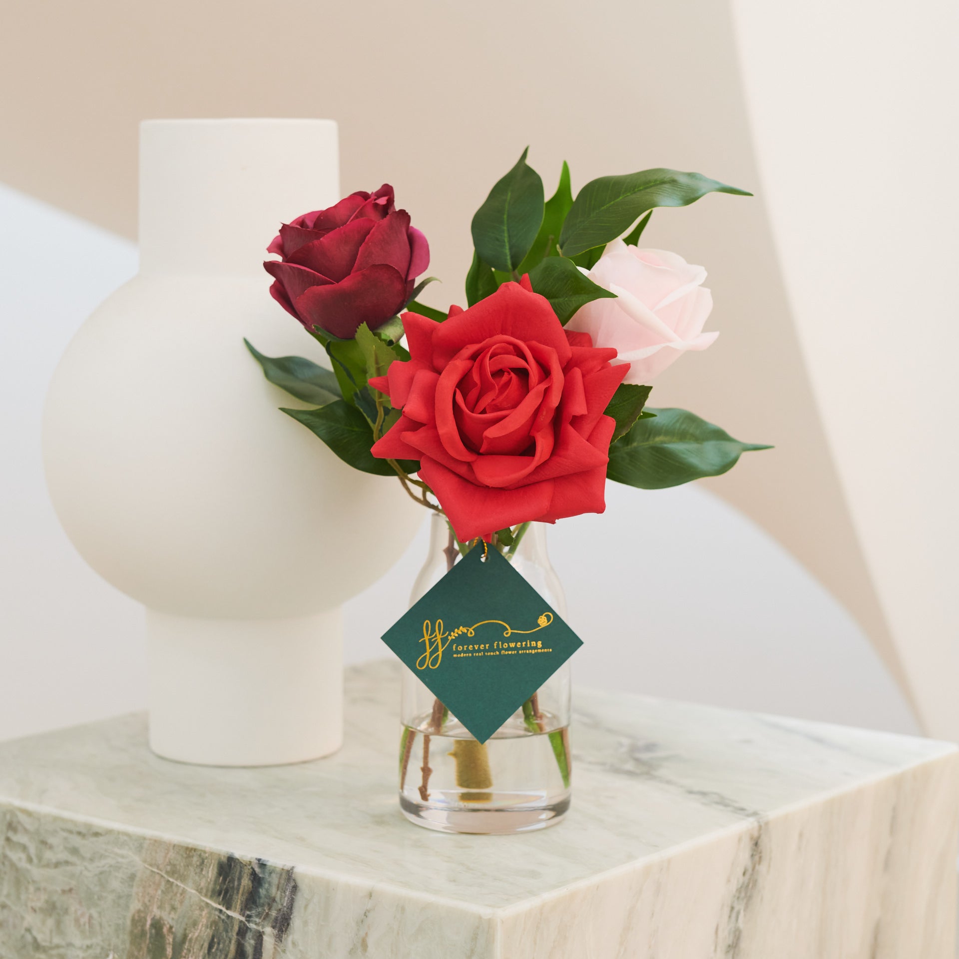 A classic set of arrangements Romeo and Juliet featuring our Signature Real Touch roses.