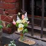 Based on our best selling Ava arrangement and featuring Real Touch Tulips, Lisianthus and Lilacs with Poppy set in a Glass Vase in Artificial Water.