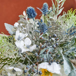 Snowflake: Real Touch Poppy, Thistle and Silver Blossom set in Glass Vase in Artificial Water.